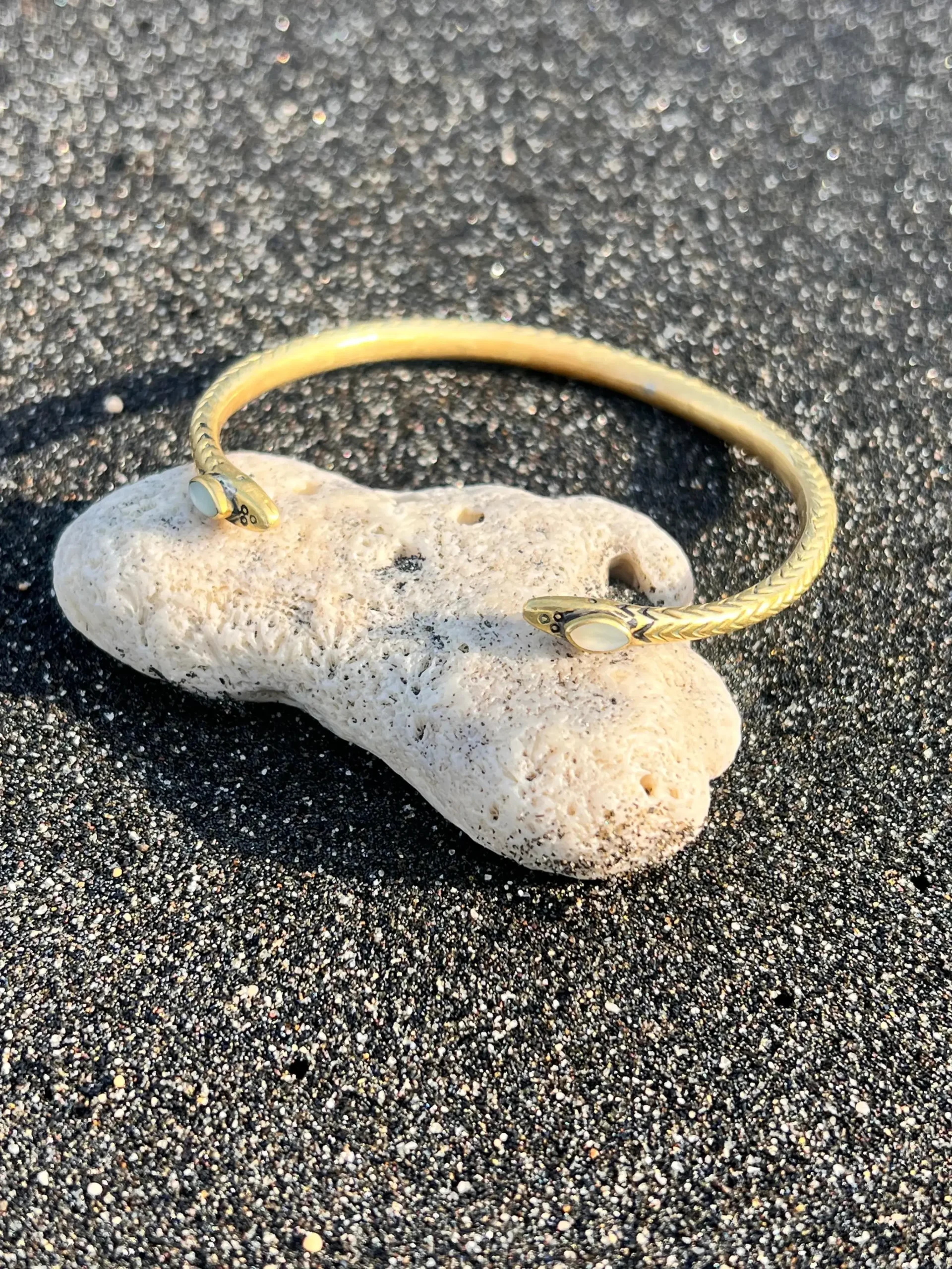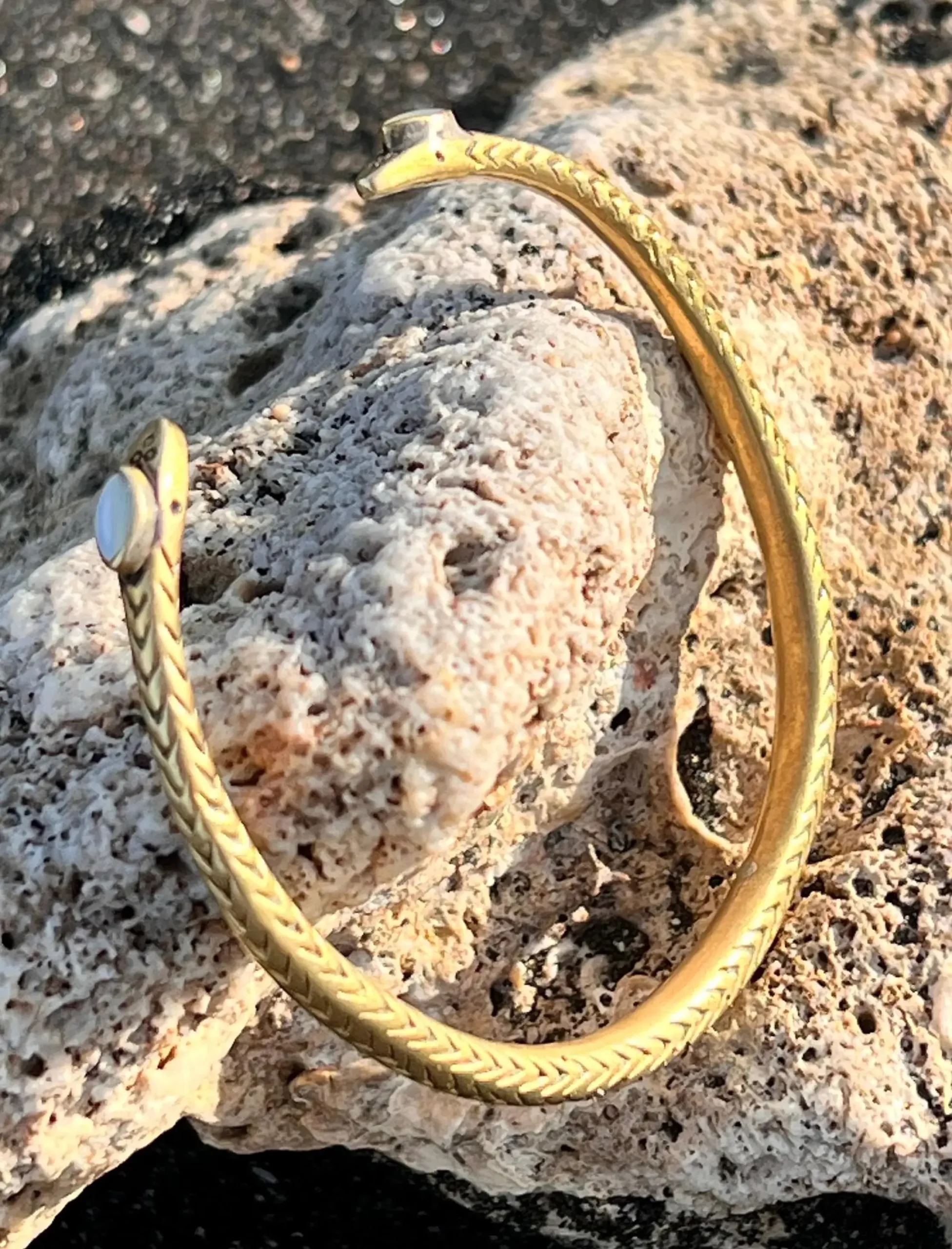 Dieser filigrane Schlangen-Armreif wurde in liebevoller Handarbeit auf Bali geschmiedet. Inspiriert von uralten Mythen, in denen die Schlange für Transformation, Intuition und weibliche Kraft steht, begleitet er dich. Er erinnert dich daran: du bist im Wandel und dabei wunderschön.
