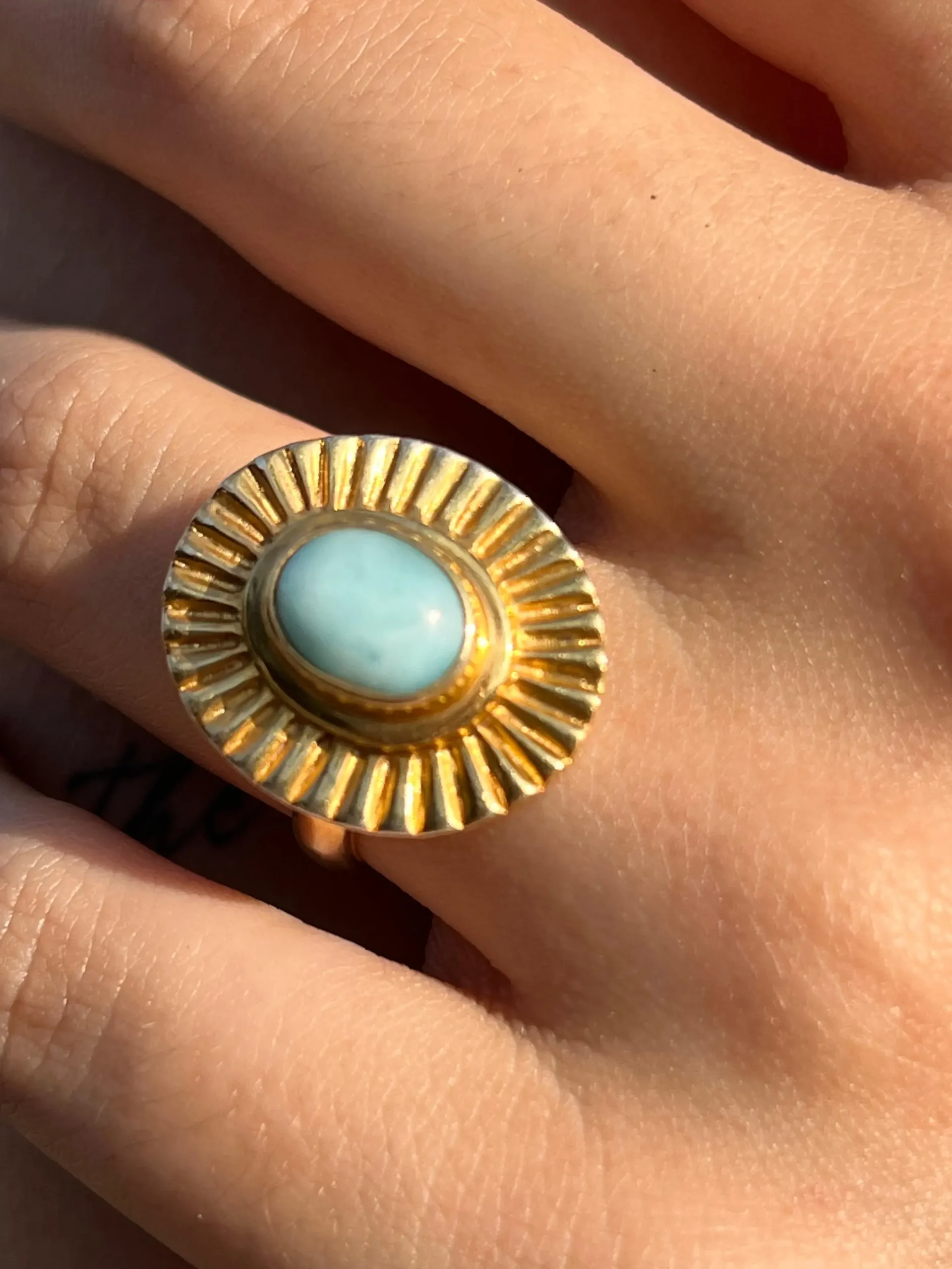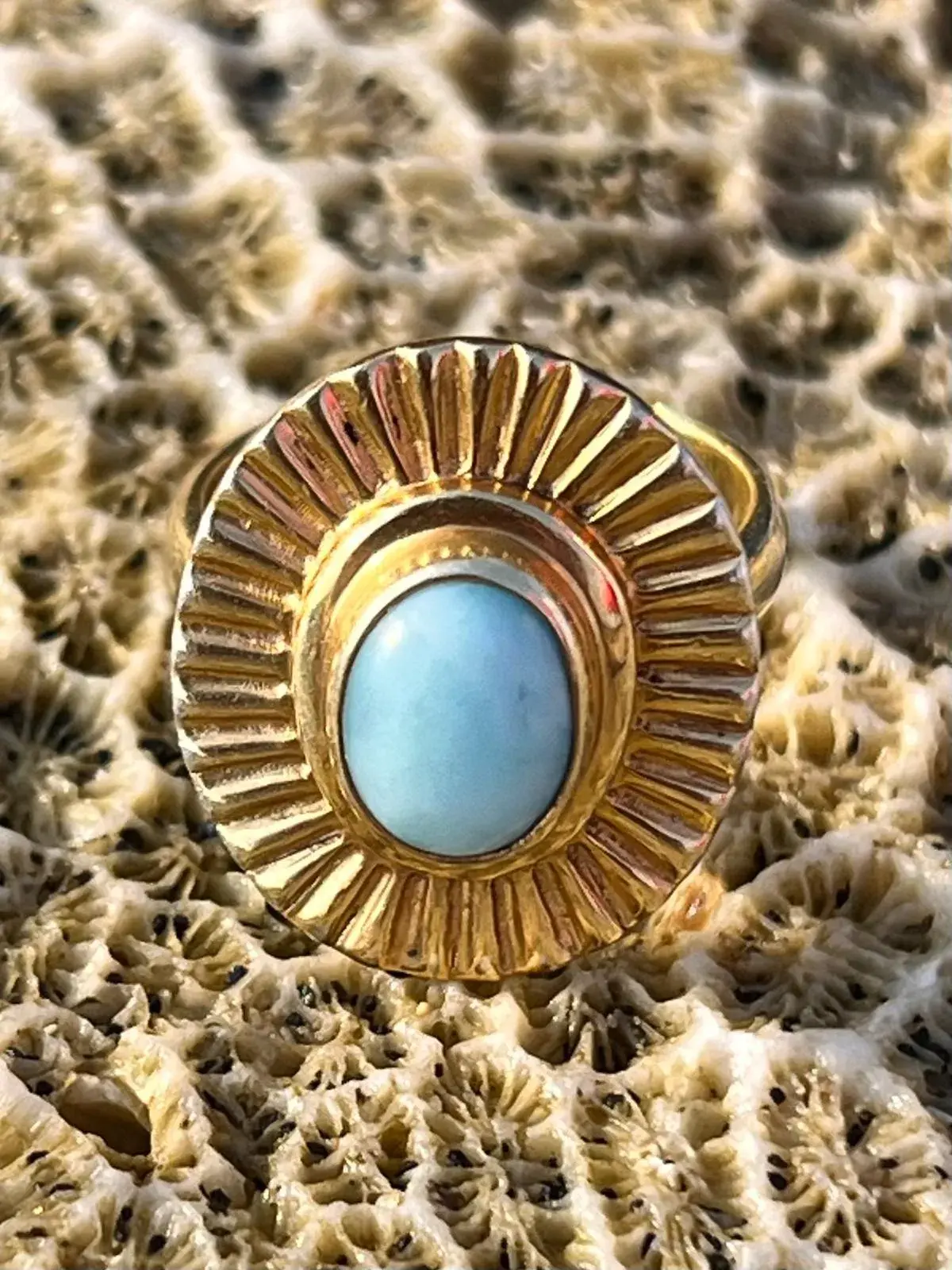 Dieser Fingerring verbindet Eleganz mit der Kraft des Türkis- ein Stein, der seit Jahrhunderten als Schutzsymbol und Quelle innerer Ruhe verehrt wird. Dieses Schmuckstück unterstreicht dein inneres Strahlen und sorgt für einen Glow-Auftritt.
